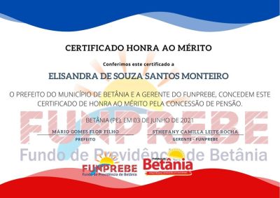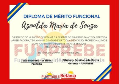 O Fundo de Previdência de Betânia realizou a entrega do Diploma de Mérito Funcional à servidora aposentada e dos Certificados de Honra ao Mérito aos pensionistas